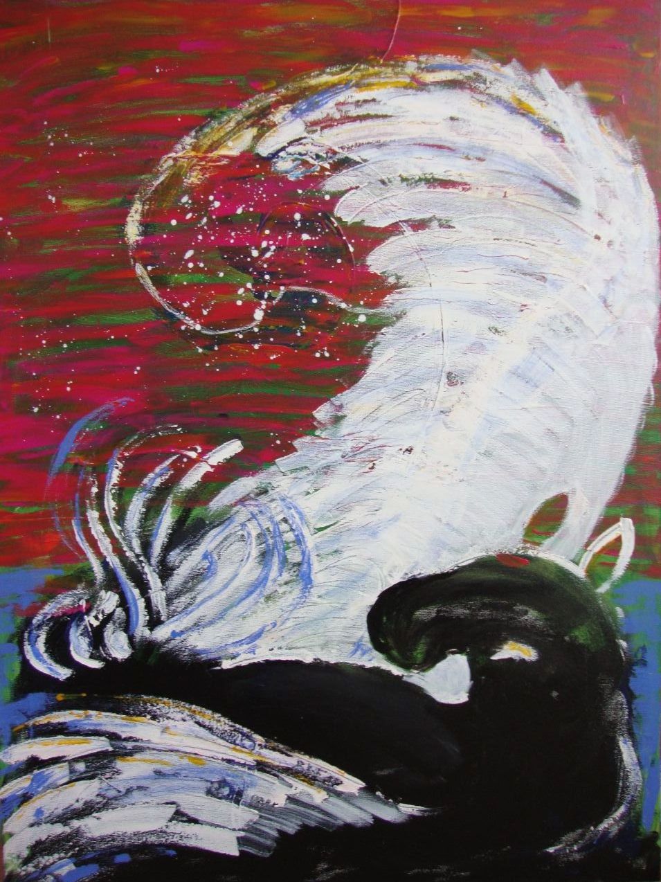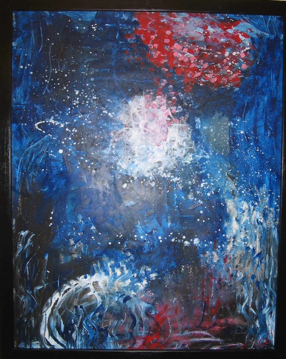 Malerierne er skabt intuitivt og uden forberedelse. Jeg er kanal for energi, der udtrykker sig via akryl og akvarel der springer på lærredet. De fleste er på lærred, enkelte er på store stykker akvarelpapir, få i str. 50x60 cm, de fleste 60x80 cm eller 100x120. Ser man dybere kan man finde beskeder i motivet. Se med hjerte, sjæl og højere bevidsthed.