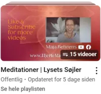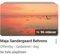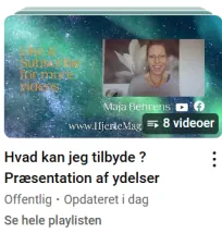 På den generelle "Maja Søndergaard Behrens" finder du videoer som kan støtte dig, videoer om healing, depression, Ro på gn forandringstider, samarbejde m. andre riger, at føle sig LOST, planetstillinger & Porte, bækken & lændesmerter, spirituelle emner, at være Starseed, og meget mere