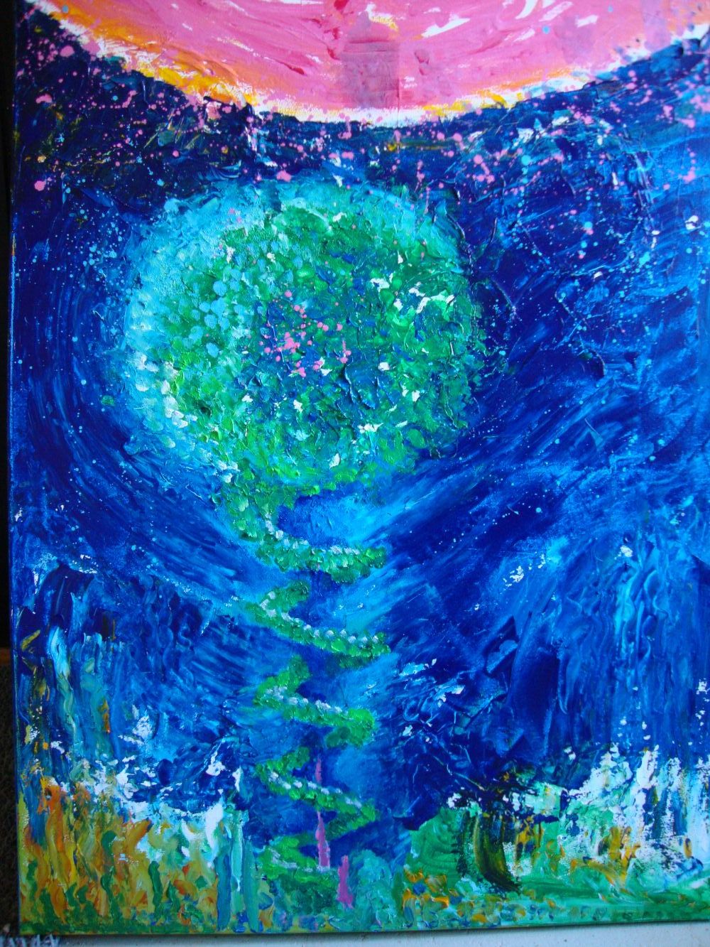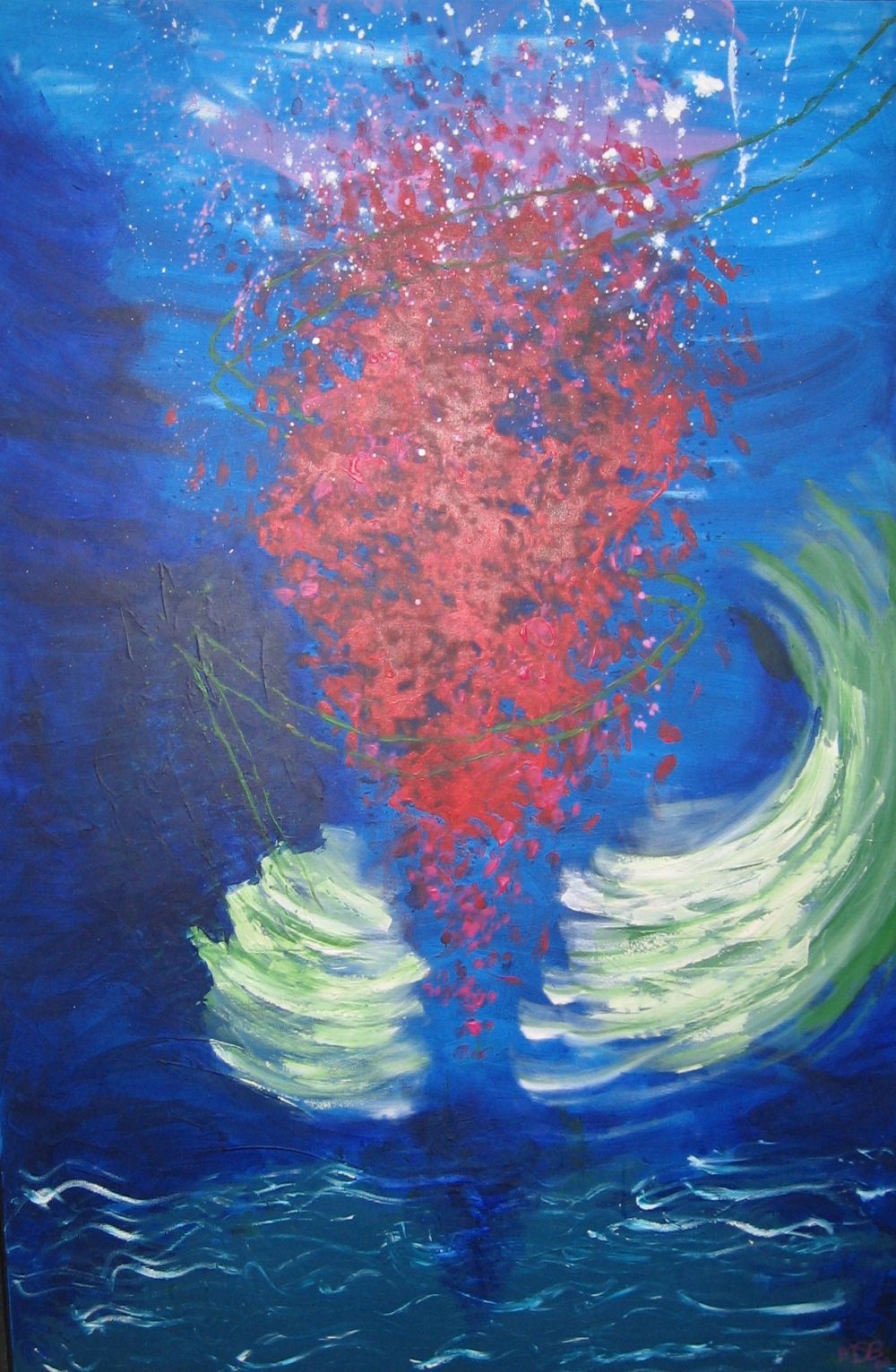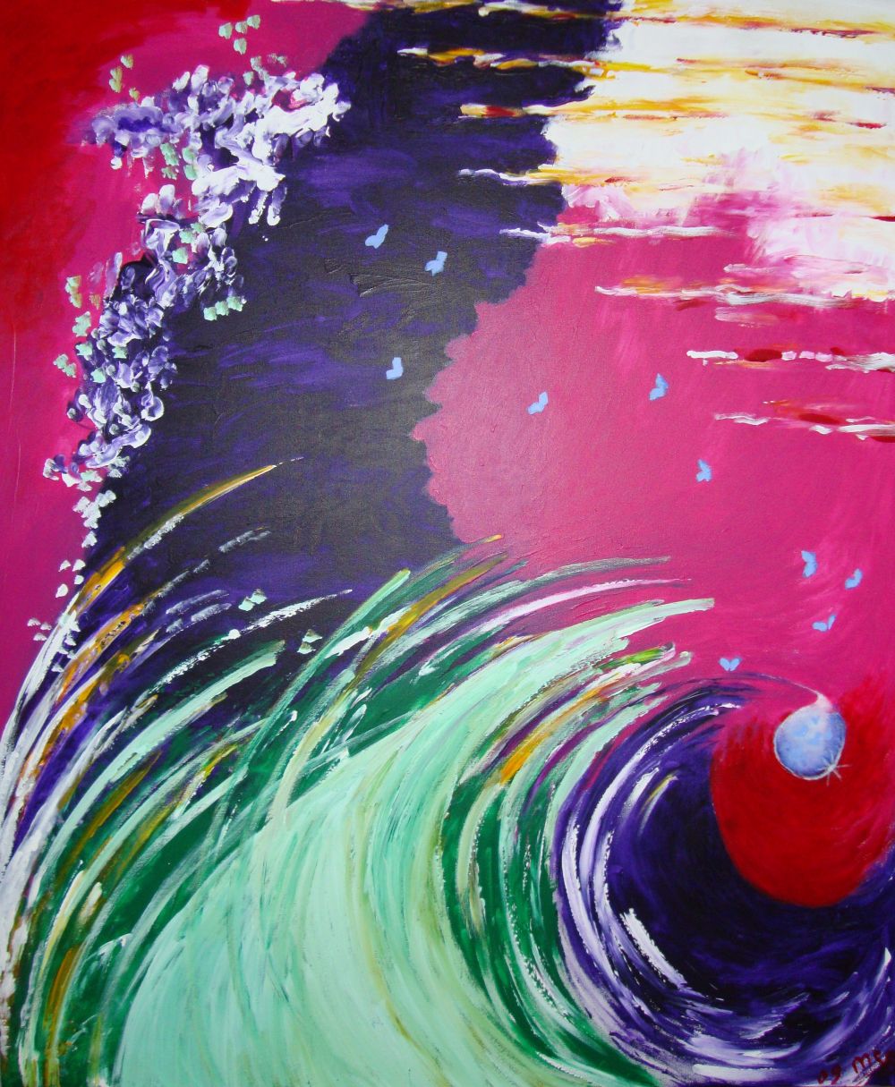 Malerierne er skabt intuitivt og uden forberedelse. Jeg er kanal for energi, der udtrykker sig via akryl og akvarel der springer på lærredet. De fleste er på lærred, enkelte er på store stykker akvarelpapir, få i str. 50x60 cm, de fleste 60x80 cm eller 100x120. Ser man dybere kan man finde beskeder i motivet. Se med hjerte, sjæl og højere bevidsthed.
